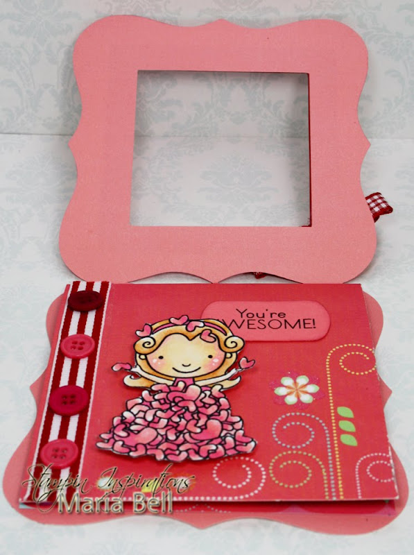 Most of the projects I'm posting today are past projects I created. For the first two photos, I created a tutorial for the box a few months ago. Click Here for the tutorial for the box.With this card, I used the myscrapchick.com "30 Boxes & More" cutting file. This was actually a quickie card I made. I cut the window using the card frame shape from the same file mentioned above. Inside of the card. I created a second card base that opens up to the inside of the card.